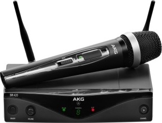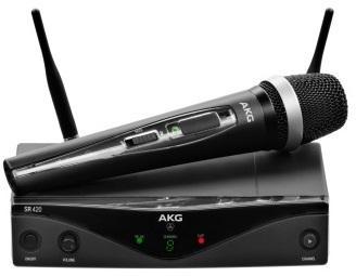 Un système complet WMS 420 se compose d’un récepteur à fréquences fixes SR420, d’un émetteur main HT420 ou d’un boîtier émetteur PT 420. L’émetteur HT420 est équipé de la célèbre capsule du microphone dynamique D5, caractérisée par son niveau élevé de gain avant larsen, sa très faible sensibilité aux bruits de manipulation et sa qualité sonore propre à AKG.