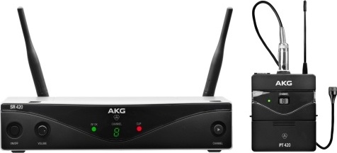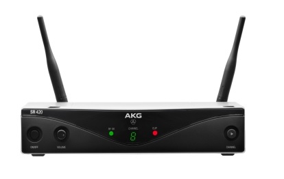 Un système complet WMS 420 se compose d’un récepteur à fréquences fixes SR420, d’un émetteur main HT420.. L’émetteur HT420 est équipé de la célèbre capsule du microphone dynamique D5, caractérisée par son niveau élevé de gain avant larsen, sa très faible sensibilité aux bruits de manipulation et sa qualité sonore propre à AKG.