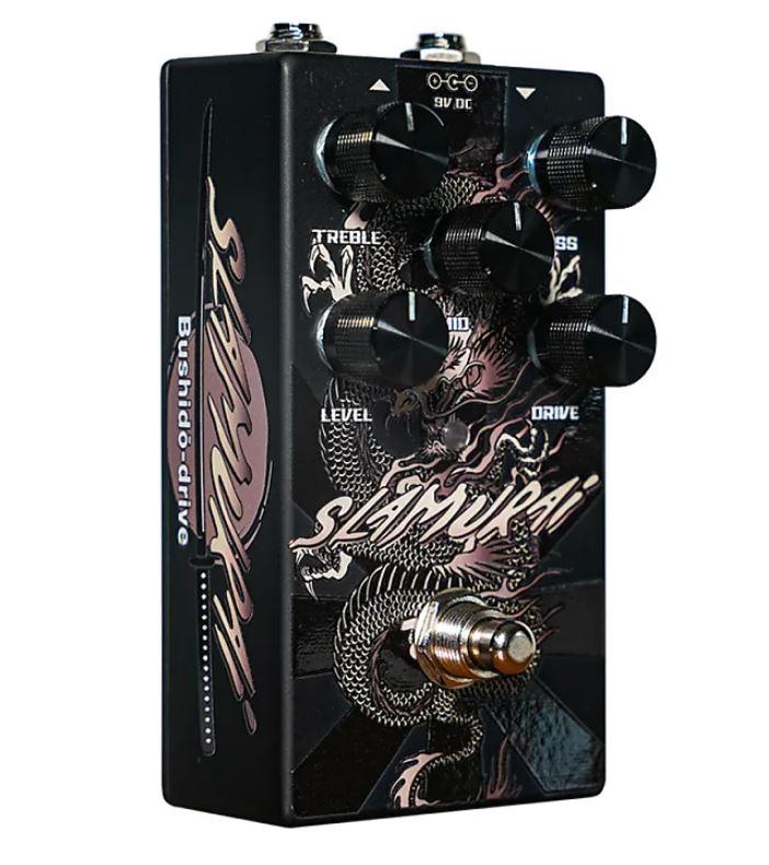 Comme pour tous ses effets, Allpedal apporte un soin particulier à l'esthétique de la Slamourai avec une peinture métallisée, un artwork sophistiqué en relief et des boutons anodisés.
