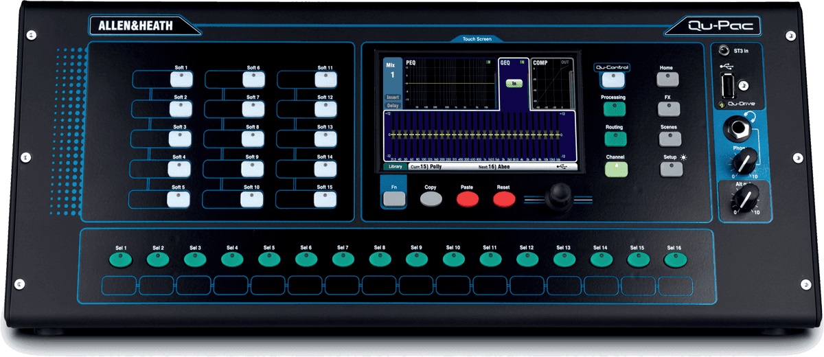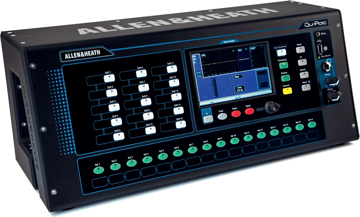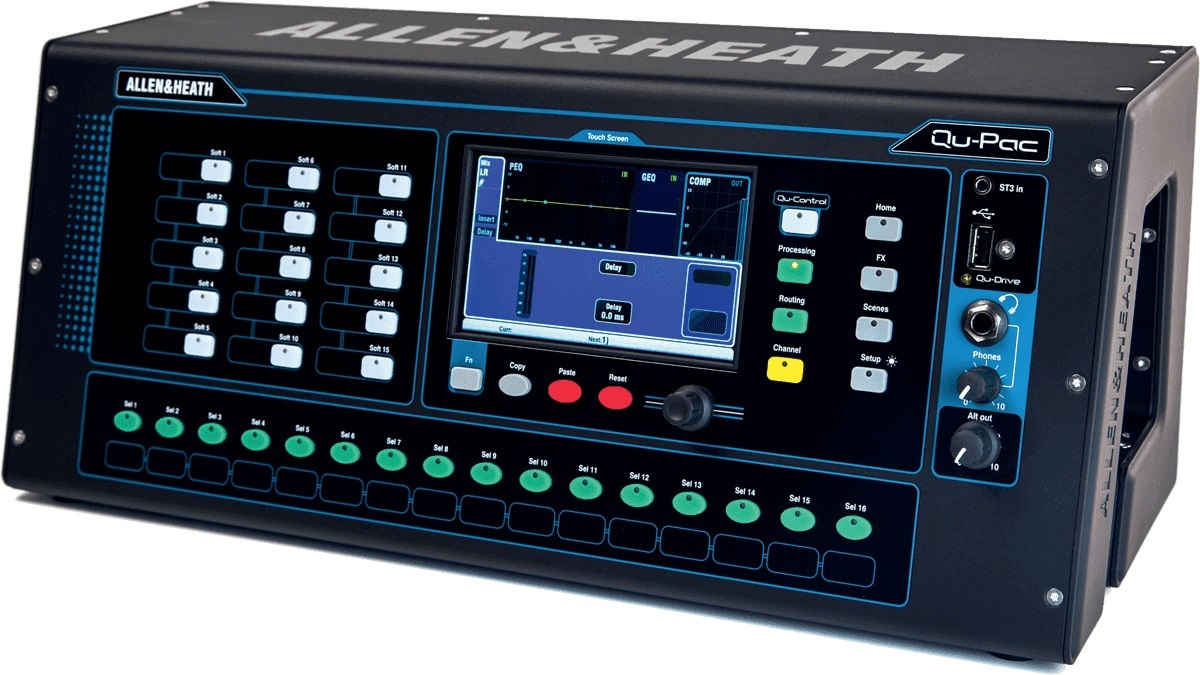La QU-Pac d'Allen & Heath reprend les caractéristiques des précédents modèles de la série, dans un format plus compact, rackable 19".