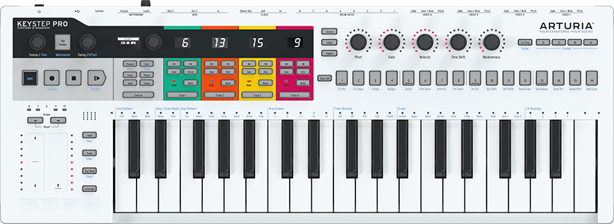 Le clavier maitre KeyStep Pro offre aux claviéristes une puissance de séquençage et de performance incroyable dans un contrôleur compact et polyvalent. Vous permettant d'articuler pleinement vos idées musicales, ce petit séquenceur expressif met vraiment la puissance au bout de vos doigts. Contrôlez et animez vos instruments comme vous le souhaitez vraiment, et supprimez les barrières