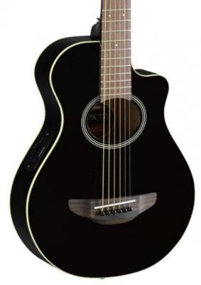 Caractéristiques : guitare folk électro-acoustique, diapason court (23”), table massive Epicéa Sitka, fond/éclisses HPL (élaboré à partir de résine et de fibre de bois laminés sous haute pression).