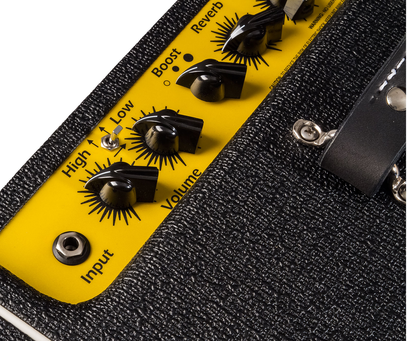 - Contrôles : High/Low Volume, 3x way Boost, Reverb, Treble, Mid, Bass, Attenuator, Line Out
