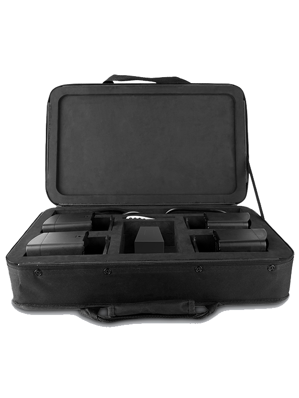Le système tout-en-un comprend 4 luminaires LED wash, 4 diffuseurs pour une répartition uniforme de la lumière, une Housse de transport pratique, un chargeur multiple pour garder vos lights toujours prêtes à l'emploi, et une télécommande IRC-6 pour un contrôle facile à distance. Plus besoin de vous soucier des installations complexes, car notre solution compacte offre un transport et une configuration sans effort.