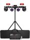 Système d'éclairage 5 en 1 comprenant des têtes mobiles, des derbies, des washs, un laser et un effet stroboscopique prémontés sur une seule barre.