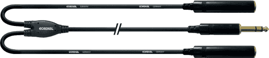 Câble Jack stéréo mâle 6,3mm vers deux Jacks stéréo femelles 6,3mm de la marque Cordial d'une longueur de 30 centimètres.