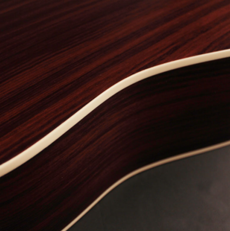 - Dos & éclisses Evorose (composite ayant l'apparence et la sonorité du Palissandre)