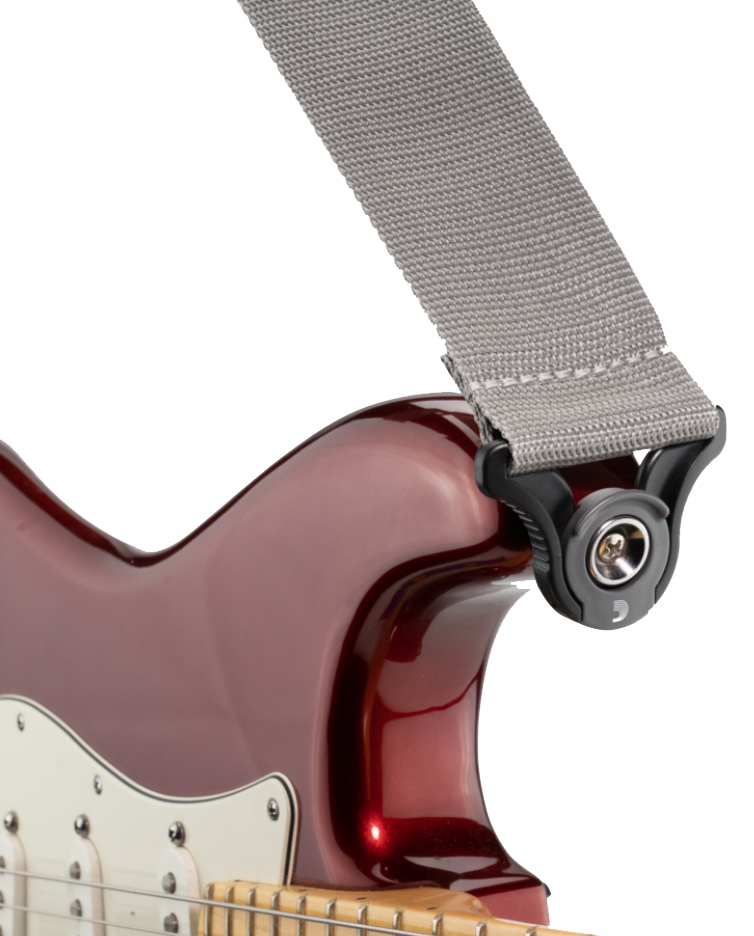 La courroie pour guitare et basse D'ADDARIO Auto Lock Locking Polypro Guitar Strap PWSAL405 est équipée d'un système d'attache de sangle avec ressorts qui enserrent automatiquement le bouton. Aucun risuqe ainsi de voir la sangle se décrocher.