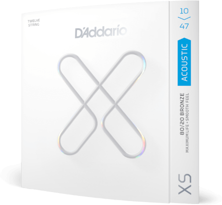 D'addario Cordes XS 80/20 Bronze avec revêtement pour guitare acoustique 12 cordes, 10-47 Light - jeu de 12 cordes