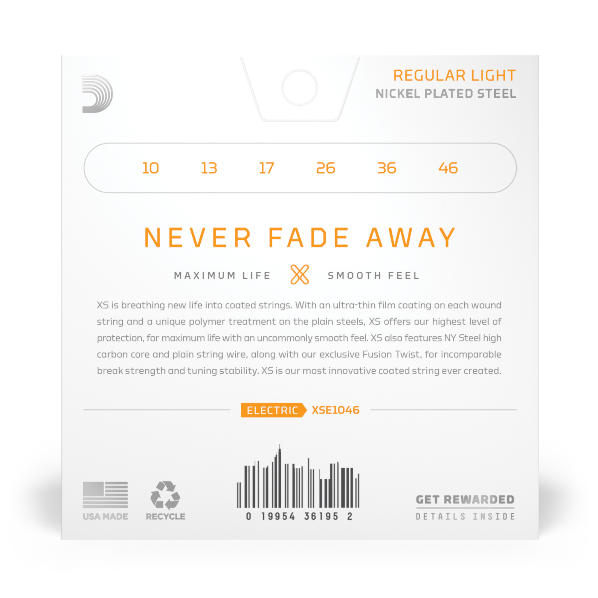 XS apporte un nouveau souffle aux cordes gainées, constituée de cordes filées recouvertes d’un revêtement ultrafin, et de cordes non-filées bénéficiant d'un traitement polymère unique, la gamme XS vous fait profiter de notre niveau de protection le plus élevé pour des cordes avec une durée de vie maximale et un toucher doux surprenant. Les cordes XS sont constituées d’une âme en acier NY Steel à haute teneur en carbone, et tirent parti du processus exclusif « Fusion Twist » pour une stabilité d'accordage et une résistance à la casse incomparables. XS est la corde à revêtement la plus innovante jamais créée. Les cordes XS Nickel bénéficient de la durée de vie la plus longue de toutes les cordes pour guitare électrique D'Addario, avec un toucher doux et rapide sans problème d’effilochage de la gaine au fil du temps, ou d’étouffement du son, grâce au film de revêtement XS ultrafin.