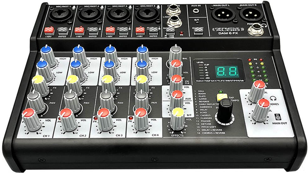 La Definitive audio DAM 6FX est une table de mixage 6 voies avec effets.