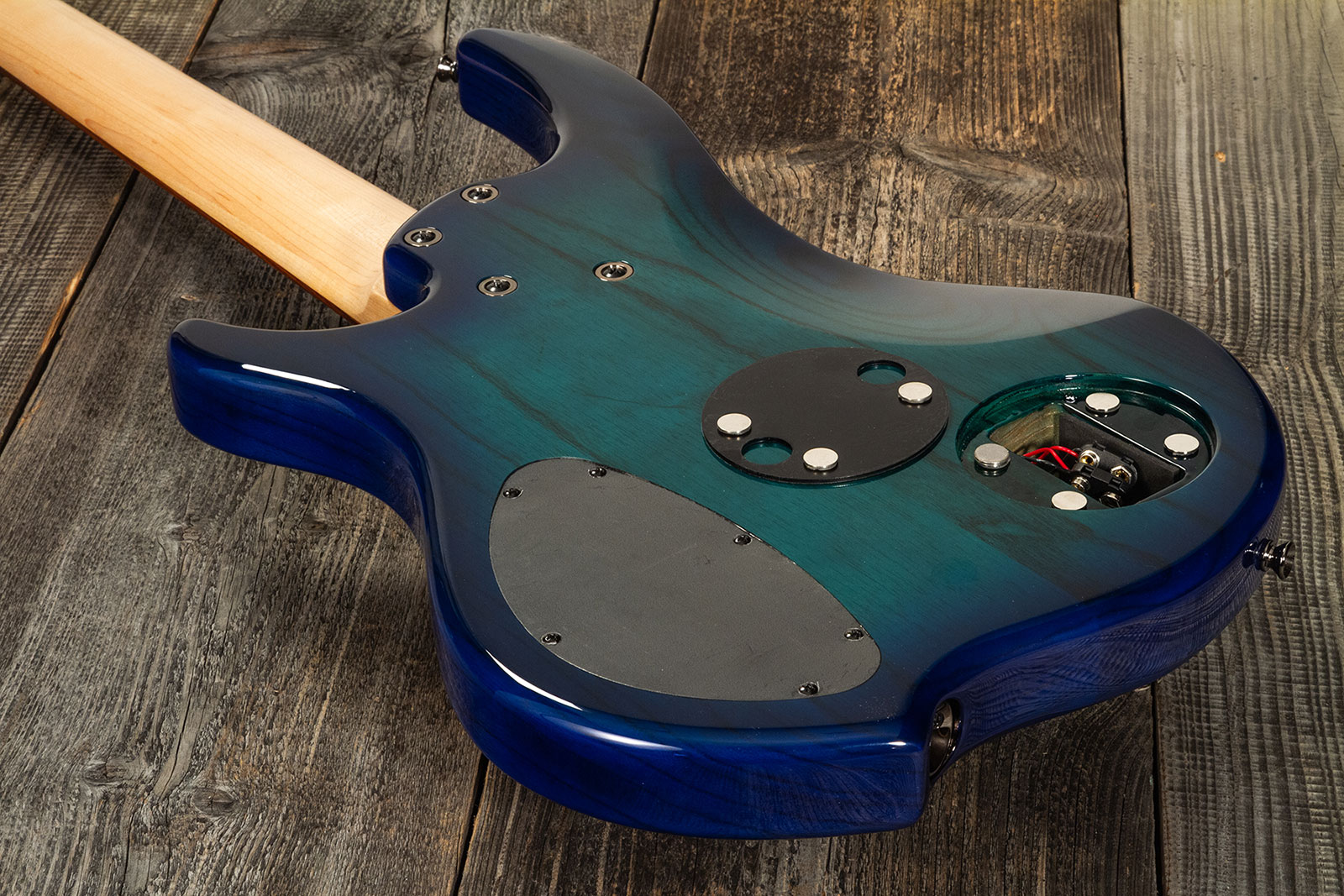 - Pré-amplification active/passive EMG avec volume, sélecteur de micros rotatif, bass/mid/treble, switch actif/passif