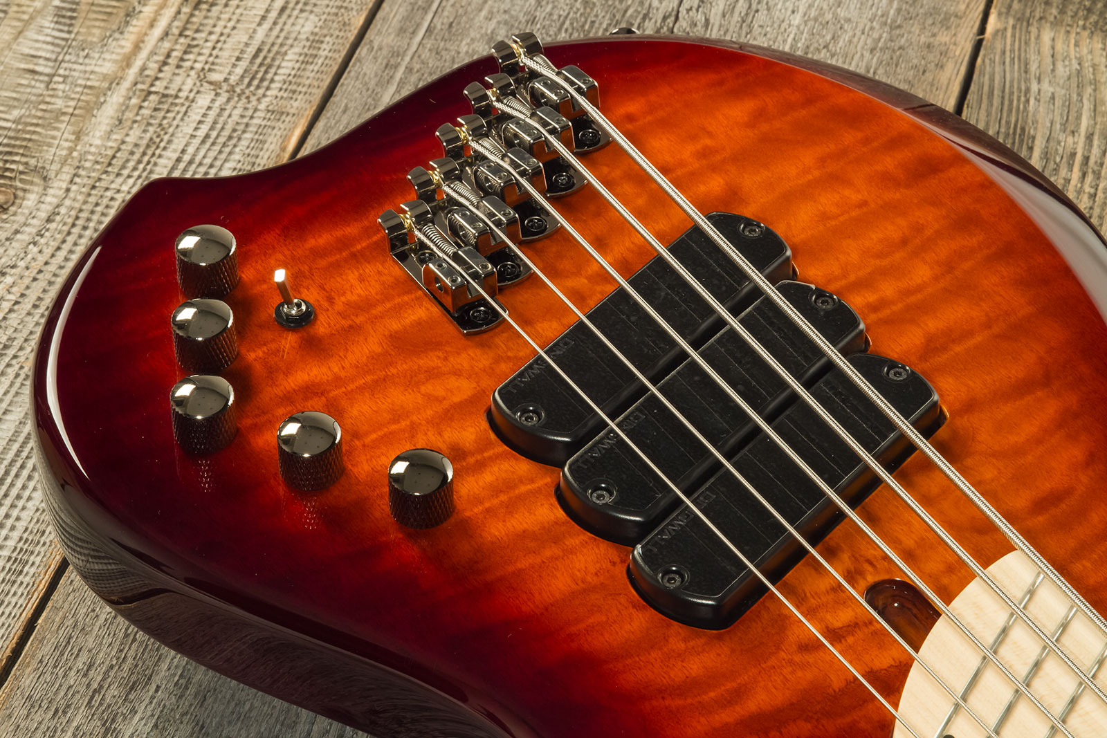 Basse électrique solid body 5 cordes DINGWALL Combustion 5 3-Pickups (MN, VB), électronique active/passive EMG, corps Frêne "Swamp Ash", manche Erable 5 pièces haute stabilité, touche Erable multi-diapason 24 frettes en éventail.