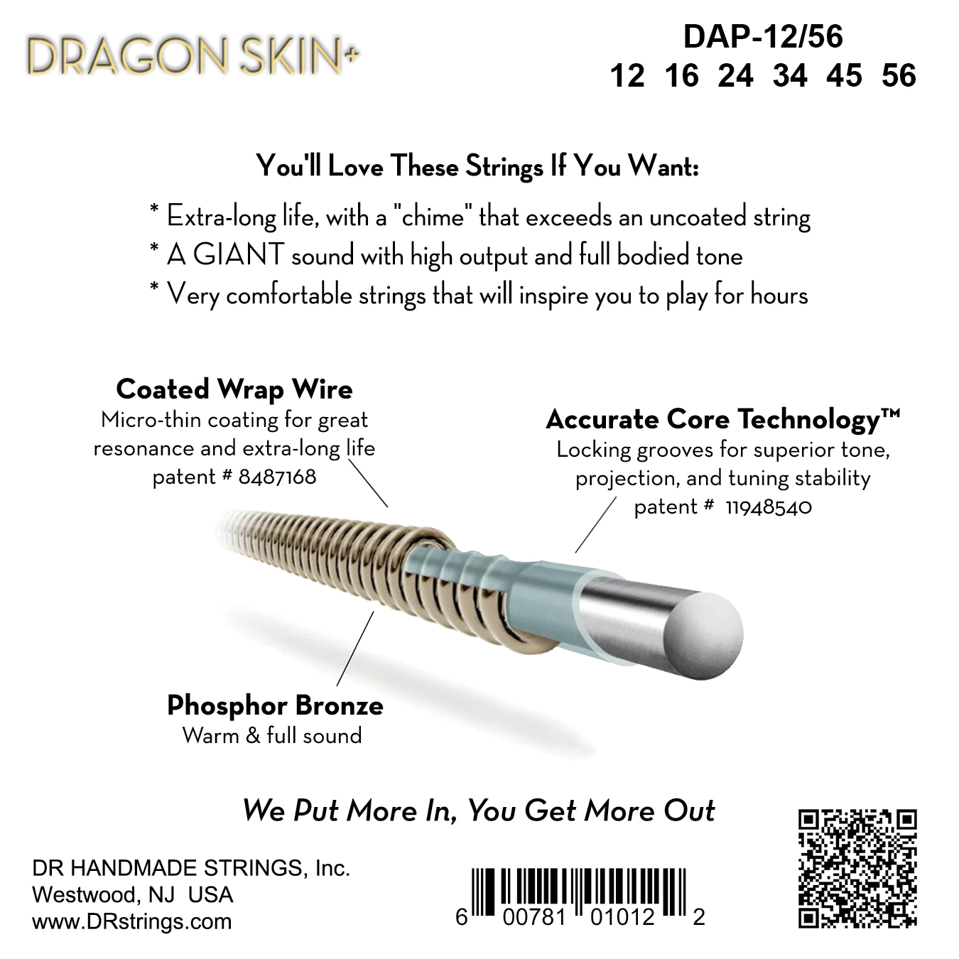 Dr DRAGON SKIN+ Core Technology Coated Wrap Posphore Bronze Bluegrass 12-56 - jeu de 6 cordes
