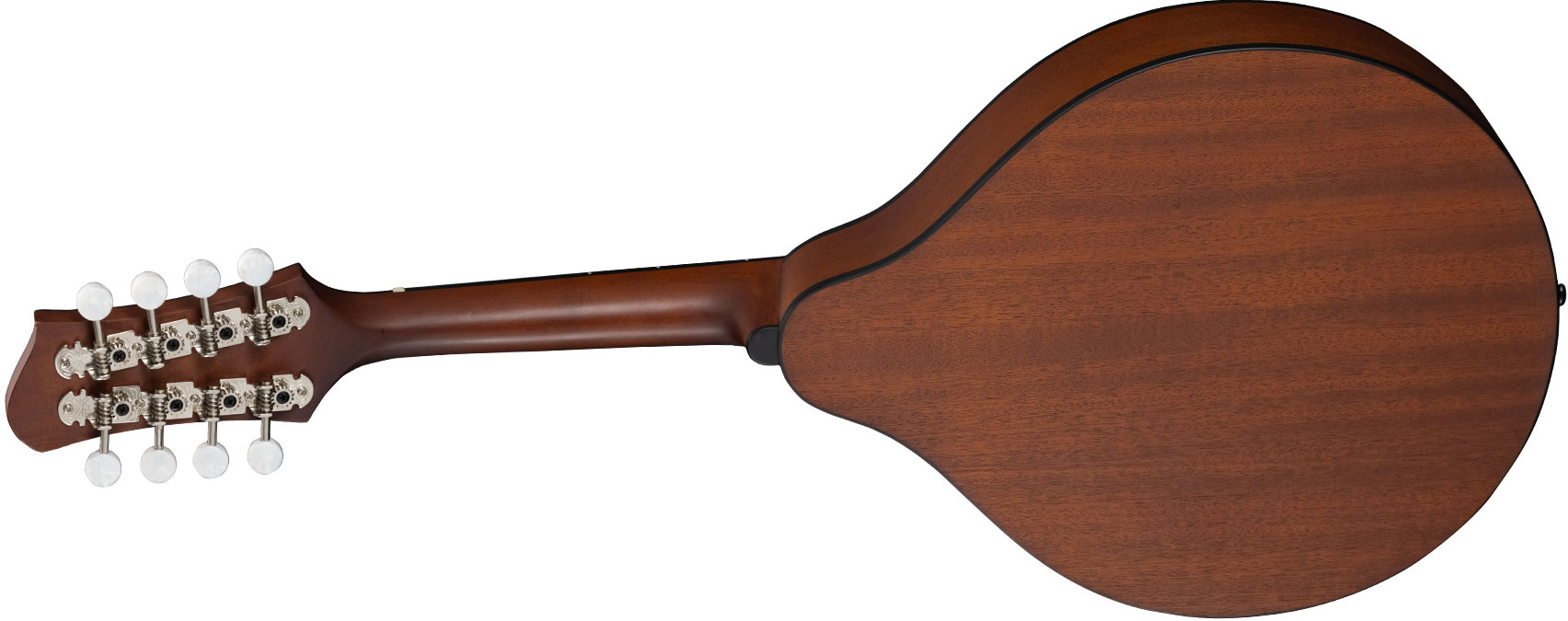 La EASTMAN Pacific Coast Highway A-style Oval-hole PCH-M104 (Truetone Satin Goldburst) est une mandoline acoustique dotée d'une table Epicéa massif, d'une caisse en Acajou laminé, d'un manche en Erable, et d'une touche en Palissandre sertie de 23 frettes.