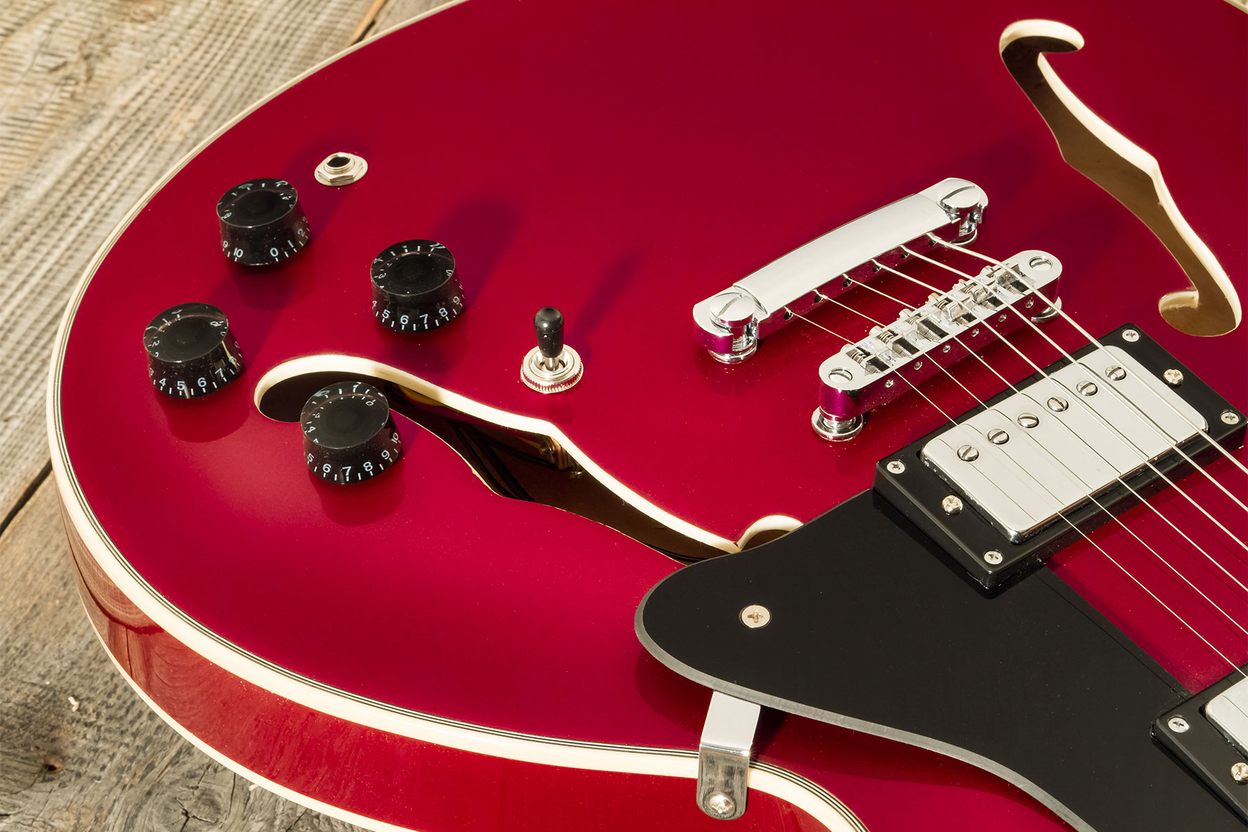 Inspirée d'un modèle américain de référence et proposée à un tarif des plus démocratiques, la guitare électrique demi-caisse avec bloc central EASTONE GJ70 (Wine Red) vous étonnera par sa grande qualité de fabrication, généralement réservée à des instruments bien plus onéreux.