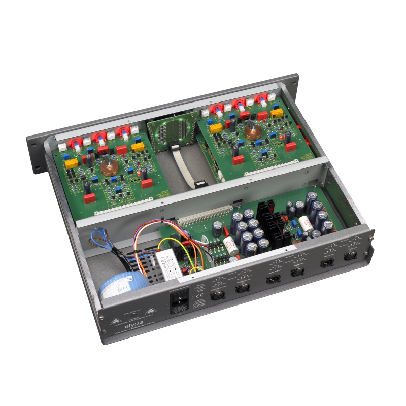 Un transfo d'alimentation sur-dimensionné, des potentiomètres en plastique conducteur mis en capsules, des stabilisateurs de température pour les éléments les plus critiques, ainsi que des amplificateurs en mode "Current-Feedback"... voilà pour les détails technologiques. La combinaison de ces éléments a pour but d'atteindre la plus grande qualité de signal tout en garantissant propreté et puissance du son sur les réglages les plus extrêmes.