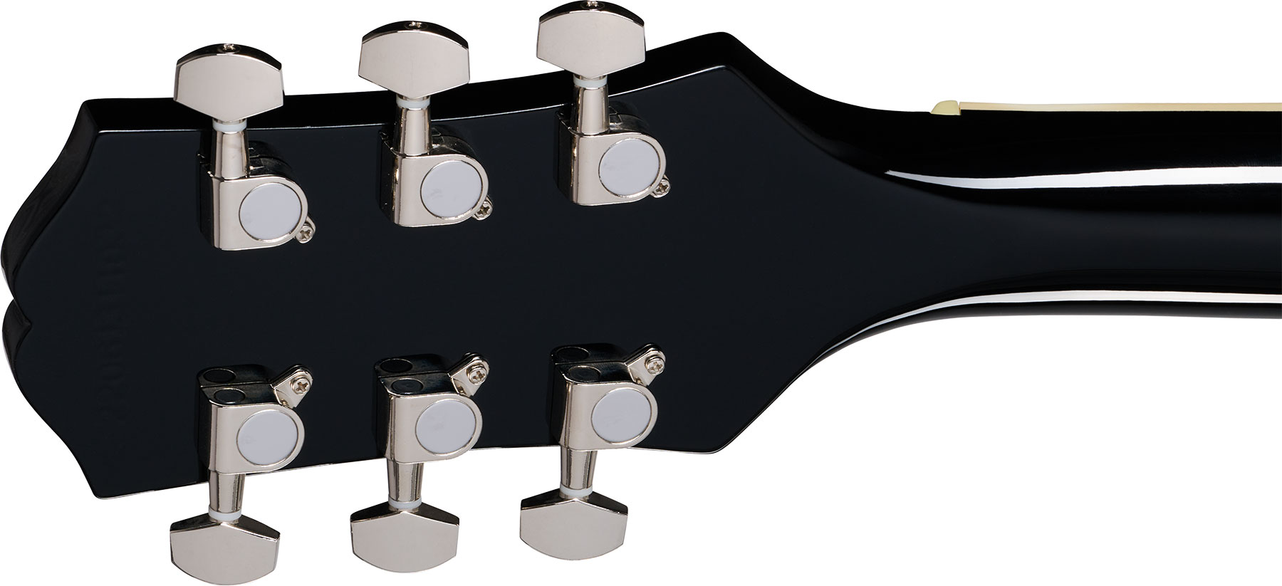 Elle en possède le tempérament fondamental avec sa lutherie tout Acajou (manche vissé) et son duo de micros Epiphone avec aimants céramique.