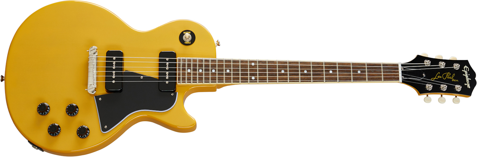 La guitare électrique solid body EPIPHONE Original Collection Les Paul Special (EILPTVNH1) fait partie de la gamme Inspired by Gibson 2020 et reproduit à un tarif très accessible les sonorités de la mythique Les Paul Special des années 1950 dans son traditionnel coloris TV Yellow.