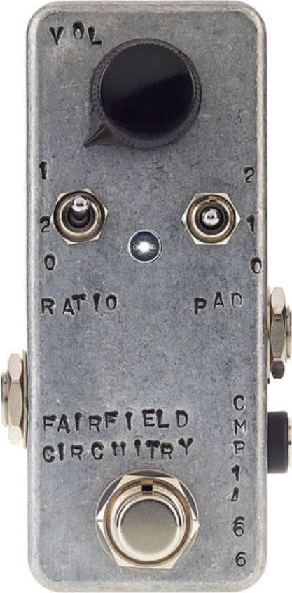 La pédale d'effet FAIRFIELD CIRCUITRY The Accoutant Compressor est un compresseur inspiré des modèles classiques à JFET et conçu pour les musiciens expérimentés qui souhaitent avoir le contrôle de leur dynamique avec style. Malgré sa petite taille, cette pédale offre une large palette d'applications, du pedalboard au studio, de la subtilité à la coloration et la compression sale. Contrôle continu du volume de sortie avec beaucoup de niveau disponible. Pad en entrée à 3 positions pour contrôler le seuil de compression. Sélecteur Ratio à 3 positions pour contrôler la quantité de compression. Véritable bypass.