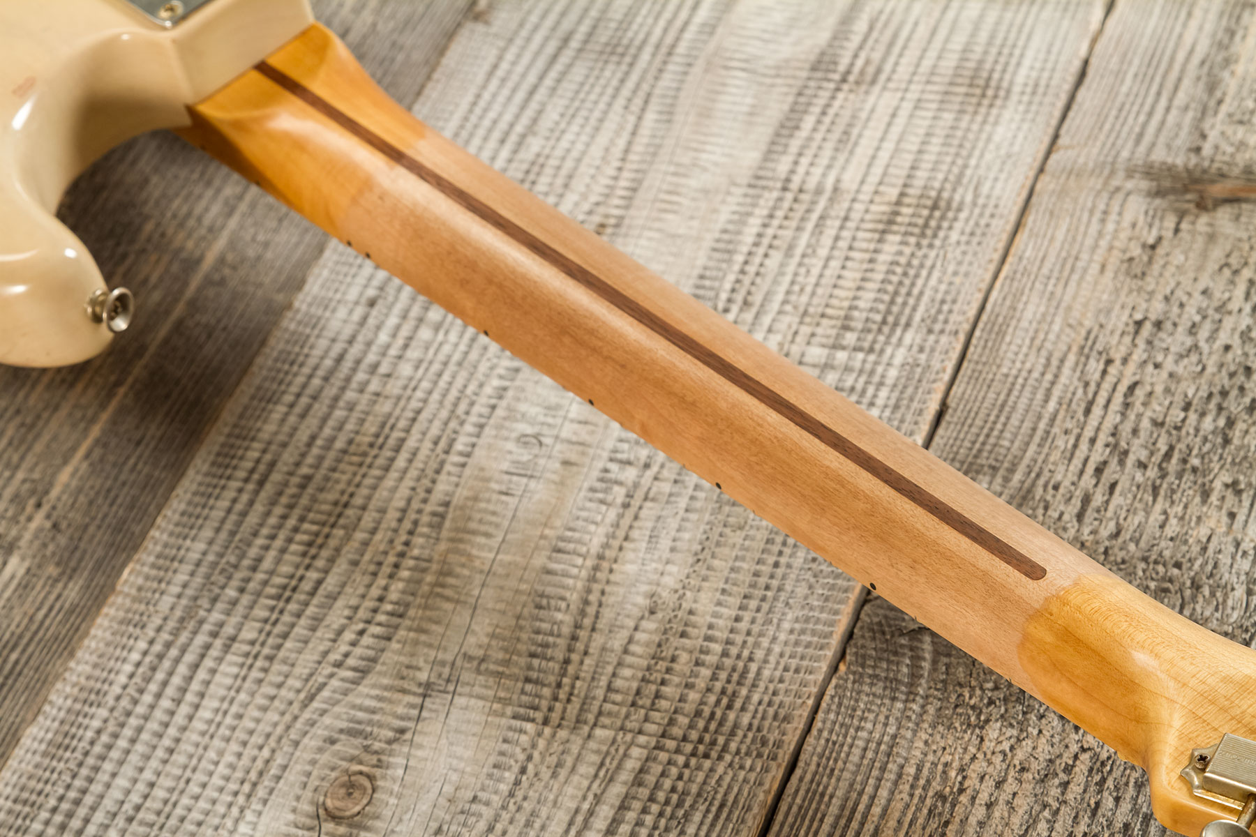 • Manche : vissé en Erable massif quarter-sawn, profil '57 Style Soft V