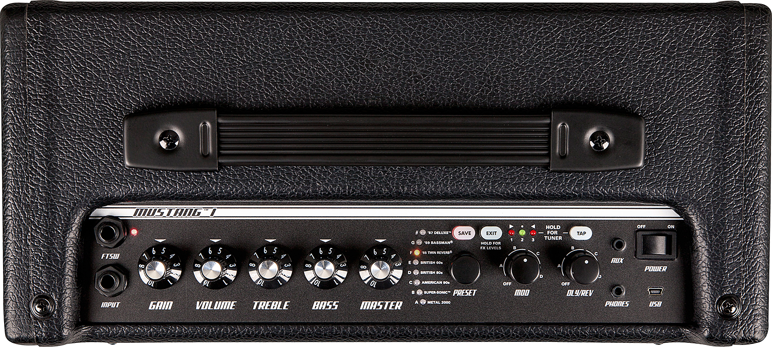 L'ampli FENDER Mustang I V.2 est un combo guitare à transistors/modélisations/effets programmable très polyvalent (20w, 1x8", 24x presets, Tap Tempo, USB).