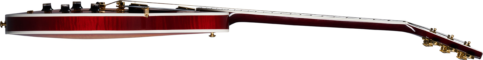 - Outre son décorum avenant, elle se distingue par sa caisse en Erable flammé AAA, sa touche en Ebène et un duo de micros Burstbucker (coli-split via potentiomètre push-pull)