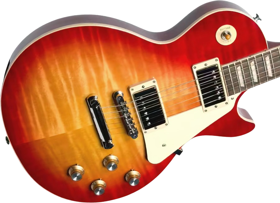 La Les Paul Original Standard 50s est équipée d'un corps en Acajou massif avec table en Erable figuré AAA, d'un manche en Acajou type Vintage 50's, et d'une touche en Palissandre 22 frettes.