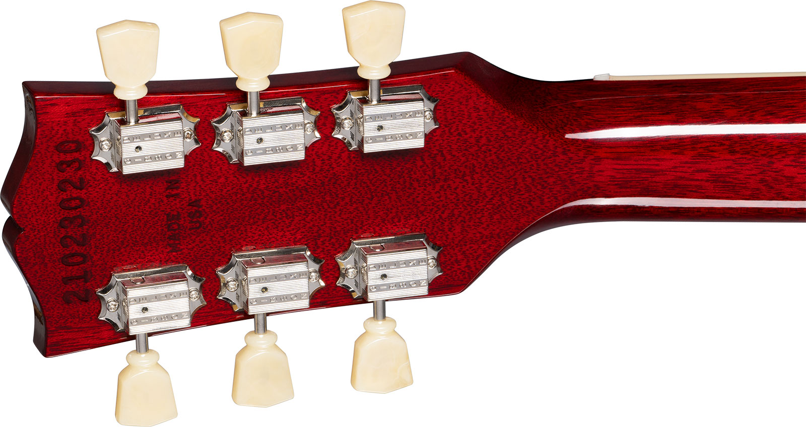 La Les Paul Original Standard 50s est équipée d'un corps en Acajou massif avec table en Erable figuré AA, d'un manche en Acajou type 50's Rounded, et d'une touche en Palissandre 22 frettes.