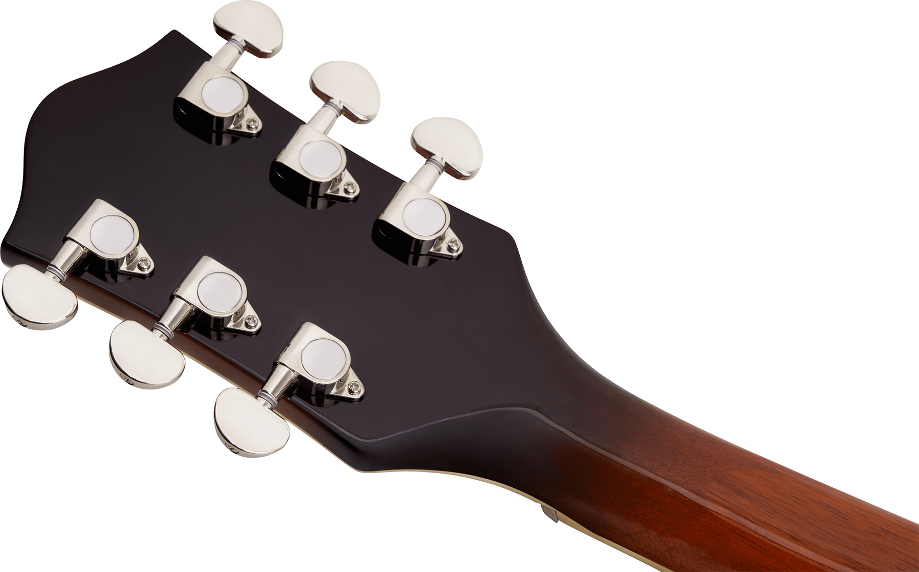 La G2622-P90 est un modèle polyvalent qui génère de superbes sons clairs et crunchs mais peu aussi supporter des niveaux de saturation honorables grâce à son bloc interne en Epicéa léger qui limite le phénomène de feedback inhérent aux guitares Hollow Body.