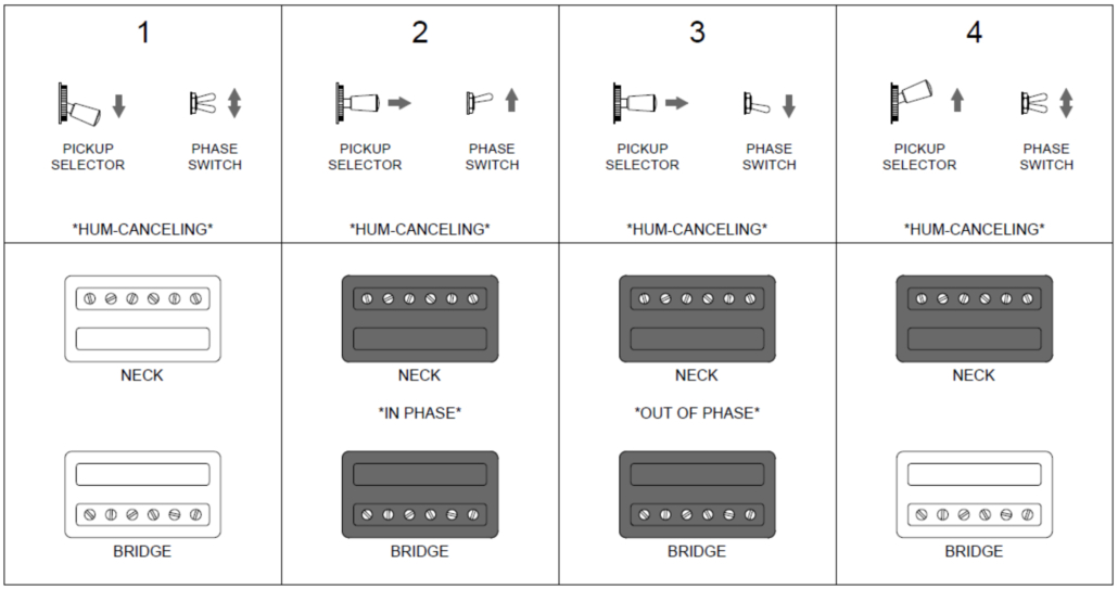 Les micros Guild HB-1 AlNiCo II Humbuckers répliquent les sonorités chaleureuses et articulées des Polara S-100 des années 1970 avec un supplément de clarté pour "trancher dans le mix". Un Phase Switch permet d'activer les micros en phase ou hors phase.