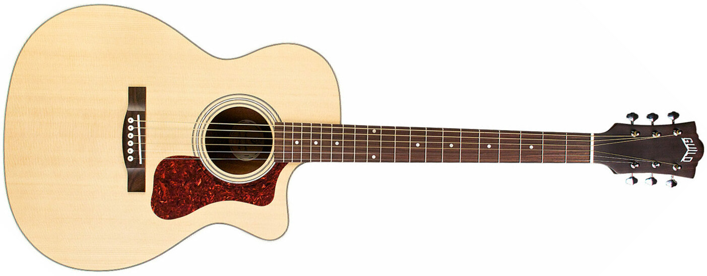 Combinant élégance et polyvalence, aussi à l'aise en strumming qu'en fingerpicking, la GUILD Westerly OM-240CE (GU169) est une guitare folk électro-acoustique de type Orchestra Model avec pan coupé, équipée d'une table en Epicéa Sitka massif, d'un dos/éclisses Acajou laminé, et d'un système de pré-amplification actif Guild AP-1 Active (contrôles de volume et basses fréquences dans la rosace).