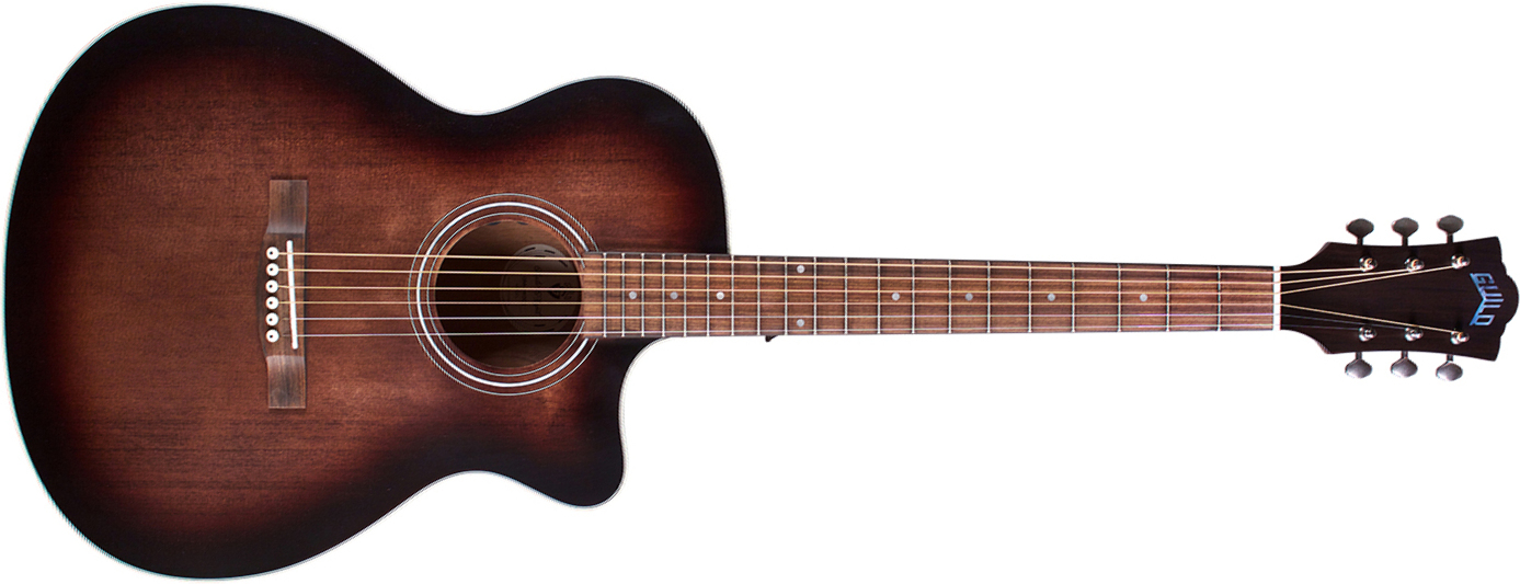 Combinant élégance et polyvalence, aussi à l'aise en strumming qu'en fingerpicking, la GUILD Westerly OM-240CE (Antique Charcoal Burst) est une guitare folk électro-acoustique de type Orchestra Model avec pan coupé, équipée d'une table en Epicéa Sitka massif, d'un dos/éclisses Acajou laminé, et d'un système de pré-amplification actif Guild AP-1 Active (contrôles de volume et basses fréquences dans la rosace).