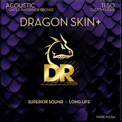 Cordes guitare acoustique Dr DRAGON SKIN+ Core Technology Coated Wrap Phosphore Bronze 11-50 - Jeu de 6 cordes
