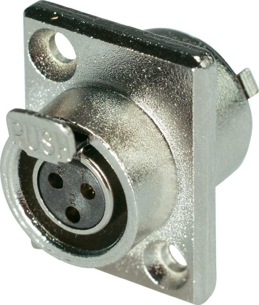 XLR Embase femelle verticale HI-XMEF3 par SOMMER CABLE avec Contacts dorés, 17,1 x 11,4 mm entre trous (Ø 2,8 mm).