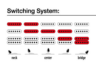 - Contrôles : 1 volume par micro, 1 tonalité par micro, sélecteur micros 5 postions