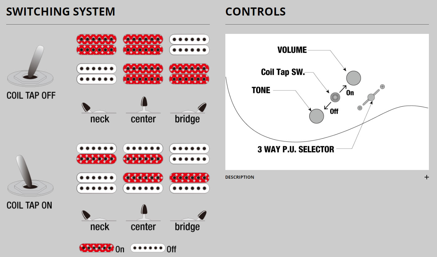 Elle est dotée d'une magnifique lutherie mixant diverses influences (corps Acajou africain, manche vissé Erable/Wenge, touche Ebène de Macassar 24 frettes), de micros double bobinage DiMarzio Air Norton / The Tone Zone (aimants Alnico 5) et d'un vibrato double blocage Ibanez Lo-Pro Edge.