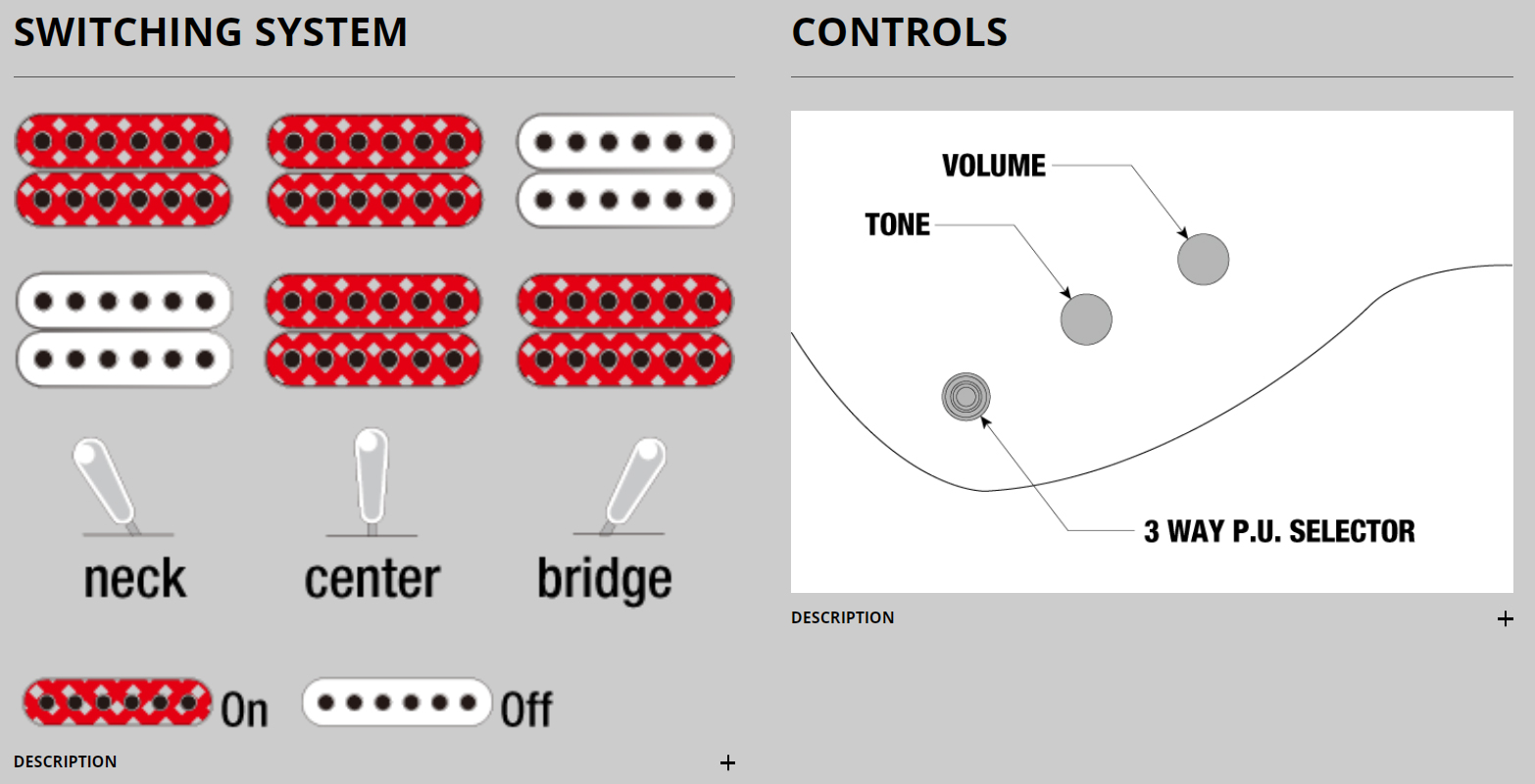 Corps Okoume, manche conducteur, touche Ebène 24 frettes, micros DiMarzio D Activator 7 (passifs avec aimants céramique), vibrato double blocage Ibanez Edge-Zero II.