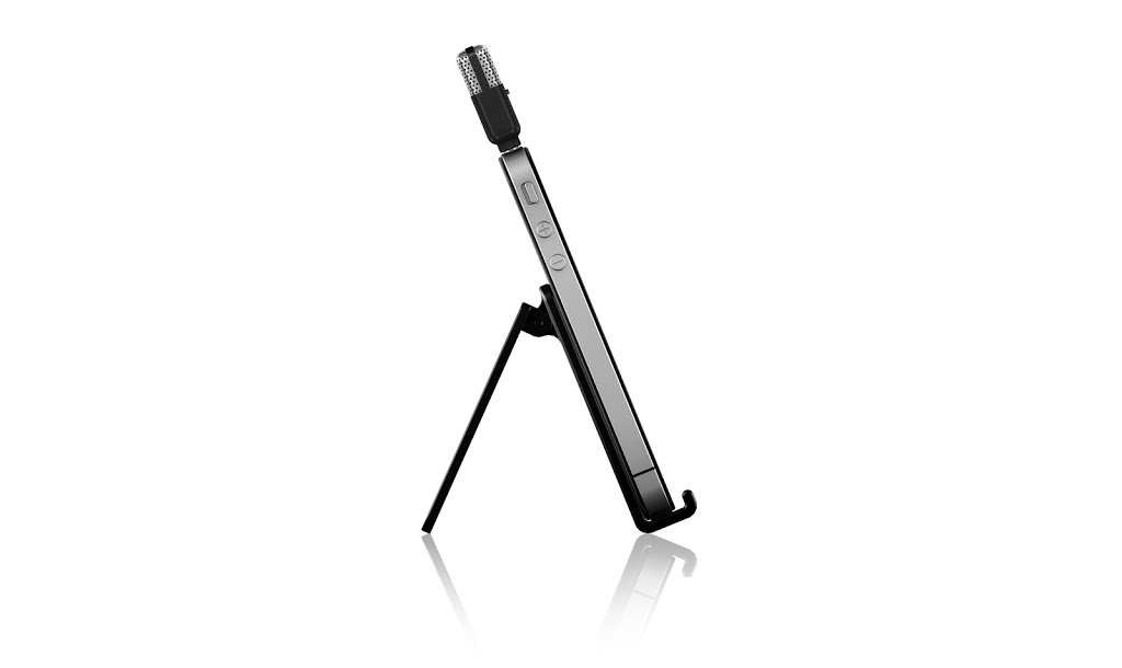 L'iRig Mic Cast est livré avec un support pour poser votre smartphone ou votre tablette à la verticale sur une table lorsque vous utilisez le micro, et IK Multimedia a inclus deux applications : l'enregistreur iRig Recorder et l'appli de multi-effets VocaLive.