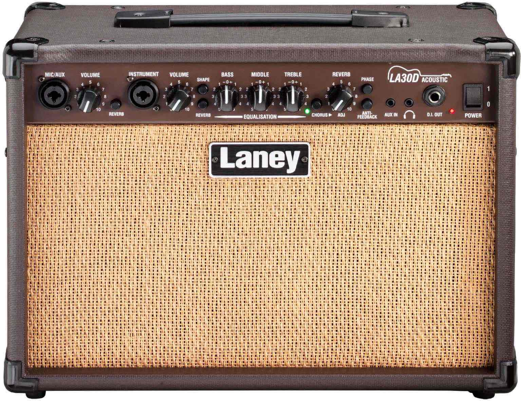 L'ampli pour guitare folk ou classique électro LANEY LA30D (30w, 2x6,5", 2-canaux, reverb/chorus assignables, 7,4 kg) est un combo idéal pour s'entraîner à la maison ou "faire le boeuf" dans un contexte acoustique; il délivre de splendides sonorités respectueuses de votre instrument et claires grâce à ses haut-parleurs de 6.5" custom.