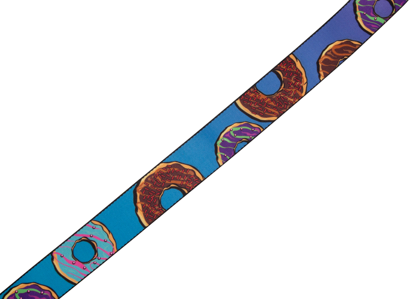 - Courroie en polyester avec impression en sublimation et embout cuir.