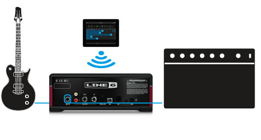 Le Line 6 AMPLIFi TT lit les morceaux stockés sur votre dispositif iOS ou Android et les transmet à votre système d'écoute.