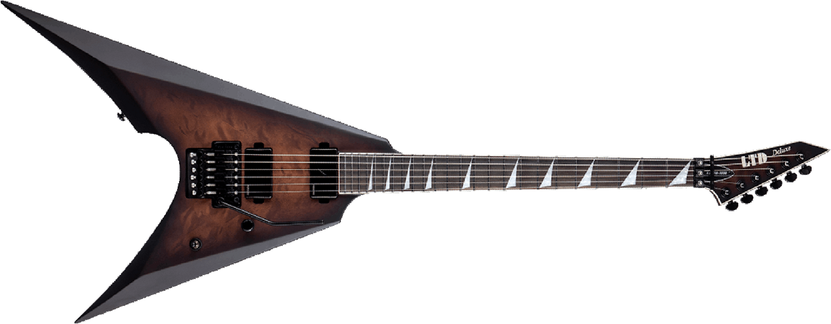 Dotée d'un set de micros double-bobinage actifs Fishman Fluence, d'un vibrato double blocage Floyd Rose 1000 et d'une lutherie inspirée d'un indémodable design en V (corps acajou et touche Ebène), la LTD Arrow-1000 est une guitare électrique solidbody abordable et attractive pour les amateurs de Metal extrême.