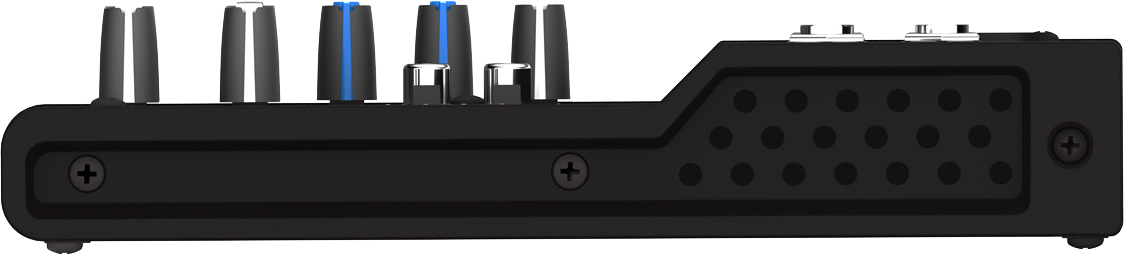 Le premier canal convient aux micros et comprend un égaliseur à 2 bandes. Sur ce canal, vous pouvez brancher des micros, des guitares et des sources lignes, par le biais d'un câble XLR ou jack. Le canal mono est muni d'un bouton Pan, alors que les deux canaux stéréo ont un bouton de balance. Cet appareil dispose également d'une entrée/sortie Tape, qui vous permet de brancher facilement un lecteur CD ou d'envoyer un mix vers un enregistreur. En bref, le Mix5 offre de nombreuses fonctions dans un boîtier compact.