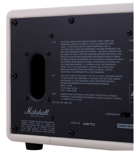 Marshall nous propose ici une enceinte nomade d'une puissance totale de 40 Watts, cette enceinte Marshall Acton fonctionne sur secteur avec un mode "économie d'énergie". Vous pouvez envoyer votre musique via la technologie bluetooth 4.0.