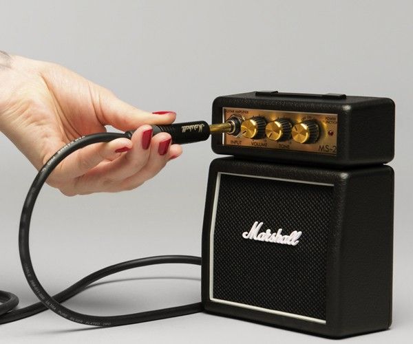 Le Marshall MS2 est un ampli miniature de 2 watts avec prise casque, marchant sur pile ou secteur, pouvant servir d'ampli de voyage.