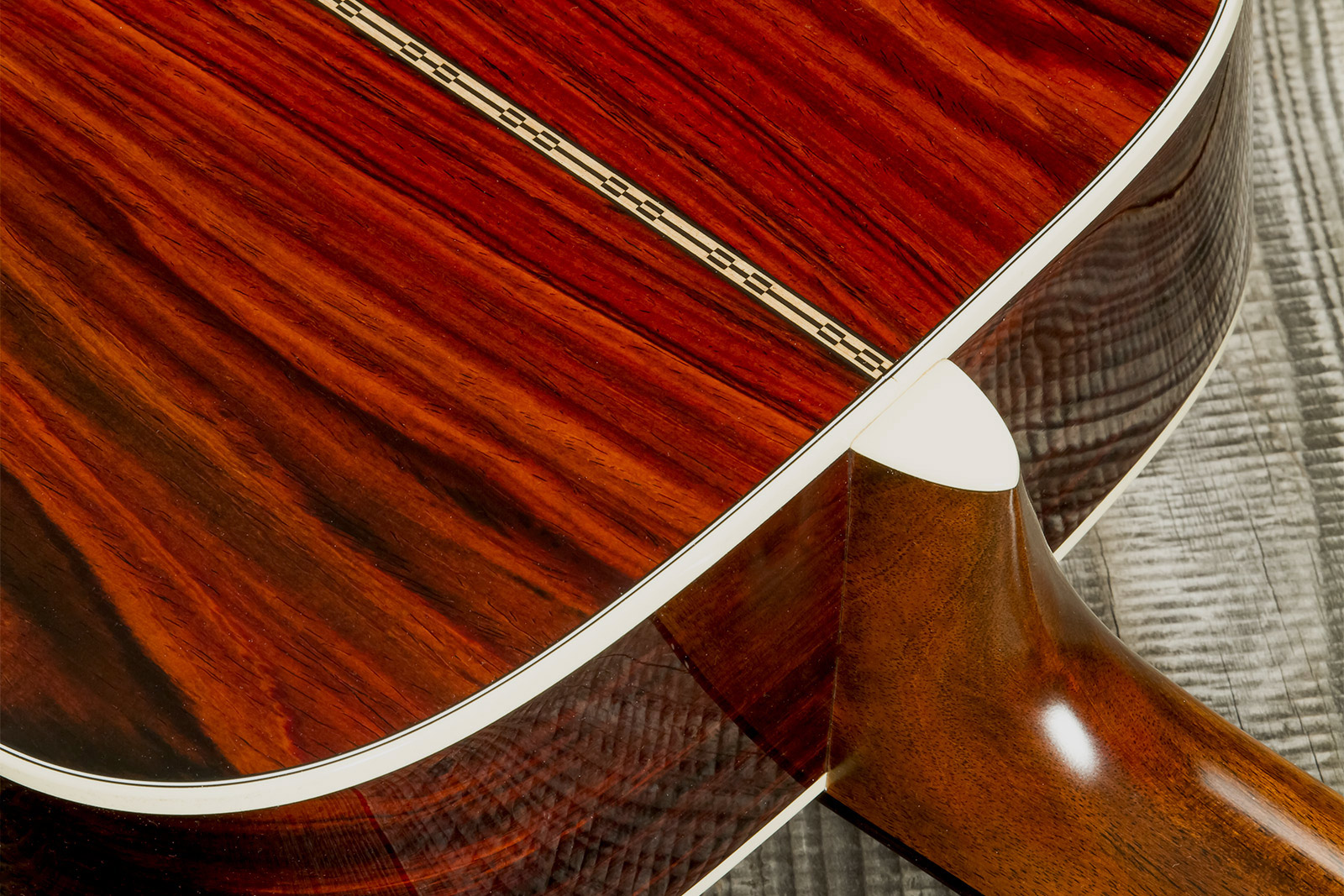 Le Cocobolo est un Palissandre issu des forêts d'Amérique centrale. Il est plébiscité pour son esthétique avantageuse et son spectre tonal généreux qui confère aux guitares dont il est constitué une remarquable flexibilité sonore et stylistique.