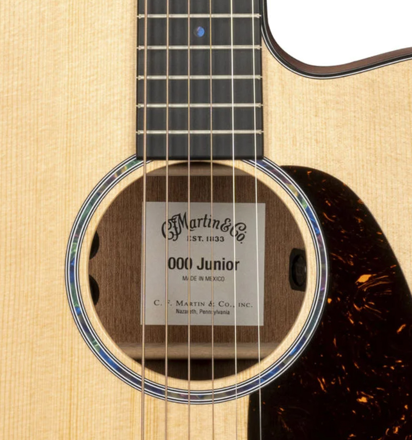 Dotée d'un gabarit approximativement similaire à celui d'une 000 à l'échelle 15/16" et d'un diapason standard de 24.9", la MARTIN GUITAR Junior Series 000C Jr E est une guitare folk électro-acoustique compacte, destinée aux débutants, aux petites morphologies ou musiciens nomades qui cherchent un instrument moins encombrant pour voyager.