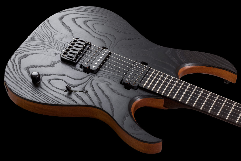 Guitare électrique solidbody avec caisse Frêne, manche vissé Wenge-Bubinga, touche Ebène 24-frettes, micros Seymour Duncan Nazgûl (céramique) & Sentient (alnico V), chevalet fixe. La MAYONES Duvell Elite Gothic 6 (GBK) est parfaitement représentative de la maîtrise de la firme polonaise dans le domaine de la guitare dédiée aux sonorités Metal modernes. Mayones fabrique des instruments haut de gamme constitués de splendides essences de bois, de composants électroniques et d'un accastillage haute performance. La qualité de l'assemblage, du frettage et des finitions en général est de niveau Custom Shop.