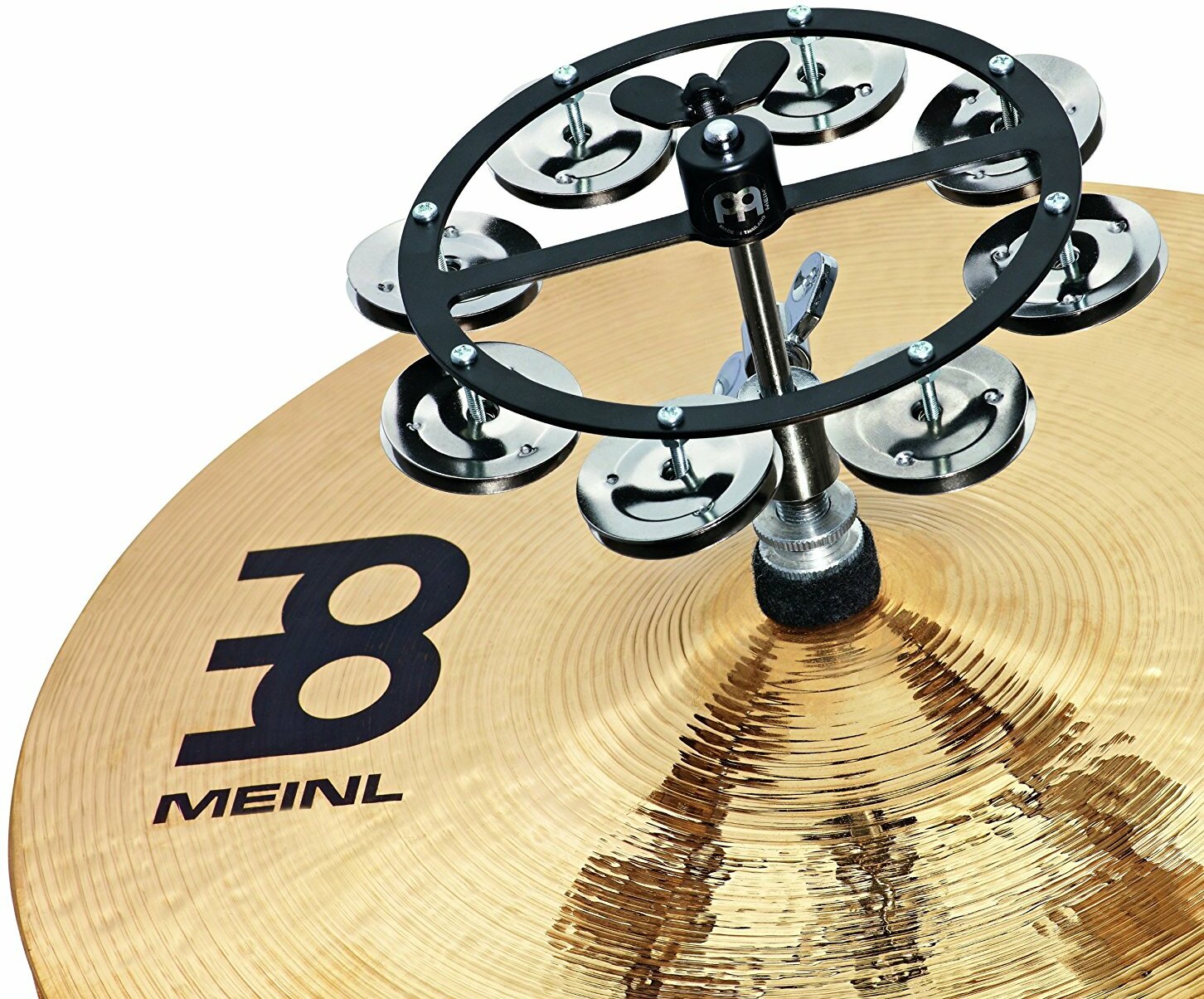 Tambourin Meinl montable sur un charleston. Envie d'agrémenter votre set de batterie sans percer votre porte-monnaie ? Ce petit tambourin Meinl vient se fixer directement sur votre hi-hat et vous permettra donc de faire des effets sonores originaux sans aucune difficulté.